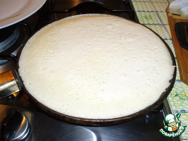 • Налить на сковороду половником и подождать момента, когда появятся дырочки на всей поверхности.