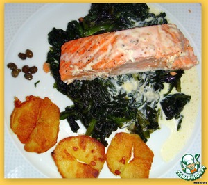 Рецепт «Лосось со шпинатом "Рыбка под водкой"»:
