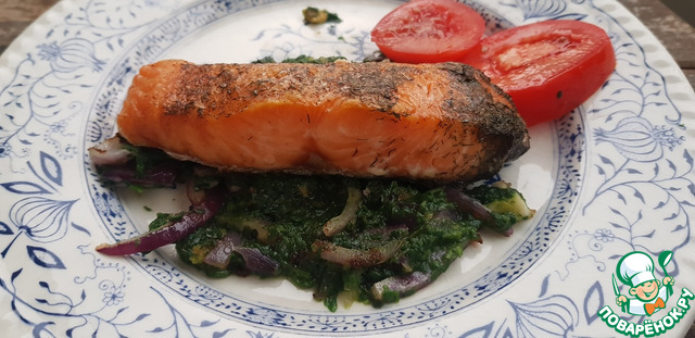 Лосось со шпинатом "Рыбка под водкой"