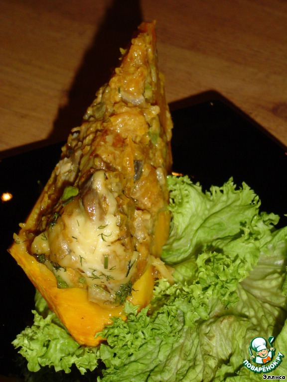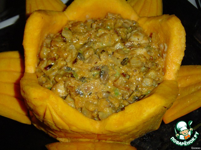 • Этой смесью начиняем тыкву и отправляем в духовку на 15-20 минут.