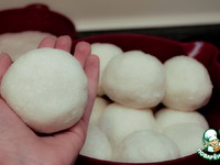 Слегка раздавить рукой полученный шарик и дать постоять несколько минут. Пока можно лепить следующие шарики. |