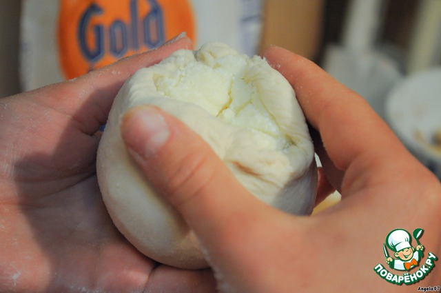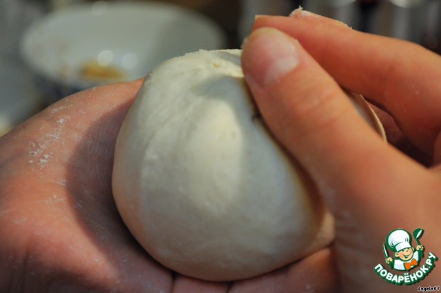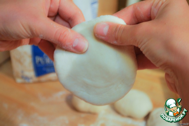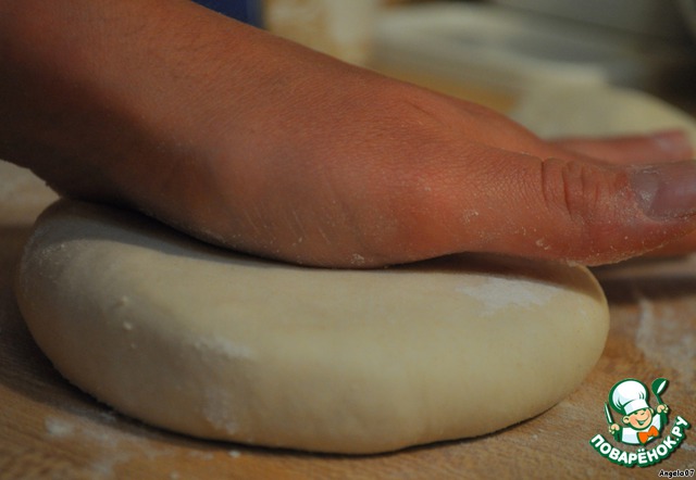Тесто раскатать немного или придать форму круга путем разминания в руках. |