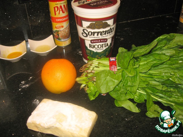 Отжать и нарезать шпинат, добавить рикотты и цедру.