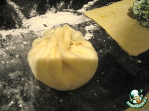 Собираем тесто в мешочек и закручиваем в узелок.