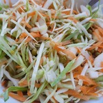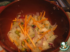 Морковку по-корейски или свежую (натереть на терке для моркови по-корейски). Яблоко натертое на терке, добавляем к капустке.