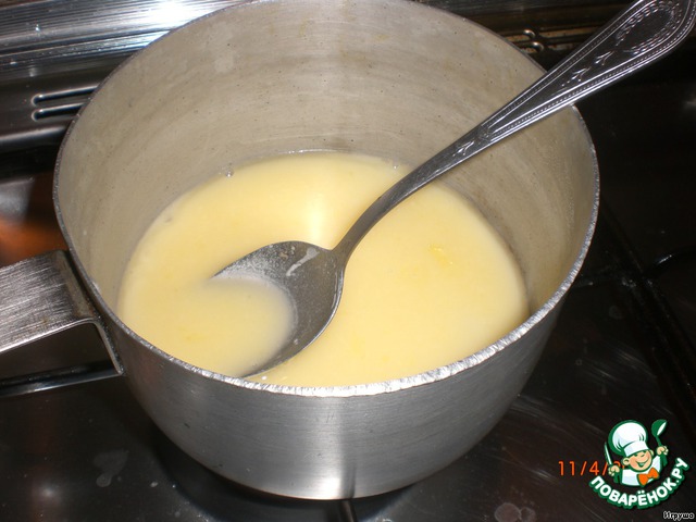 • Разводим в этой смеси муку, ставим на огонь и увариваем, постоянно помешивая, до кипения.