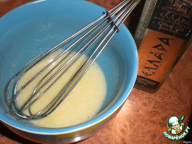 • Массу взбиваем венчиком, постепенно добавляя оливковое масло.