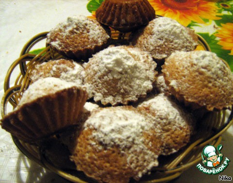 Посыпать кексы сахарной пудрой. Если нет пудры, можно смолоть в кофемолке сахарный песок.