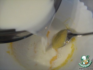 Затем молоко с сахаром доведем до кипения и вольем в желтки, интенсивно помешивая.