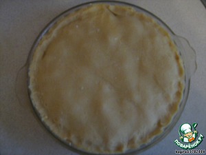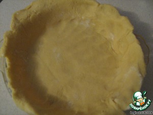 Отделяем от теста 2/3, раскатываем в лепешку и укладываем в форму(20-23 см) так, чтобы края теста доставали до краев формы.