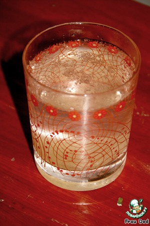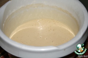 Залить желатин стаканом холодной кипяченой воды, дать настояться на время выпекания бисквита.
