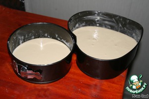 Вылить тесто для бисквита в смазанную жиром и присыпанную мукой/сухарями форму. У меня было 2 небольшие формы (обычно делаю в форме диаметром 26 см). Поставить в предварительно нагретую до 180 градусов духовку и выпекать 20-30 минут.