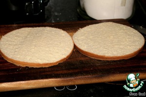 Готовый бисквит разрезать вдоль (в этом случае выпекание в 2х маленьких формах удобнее, так как удобнее резать).