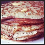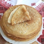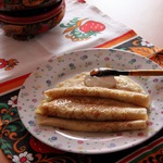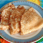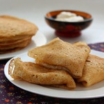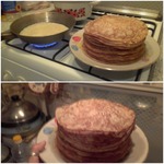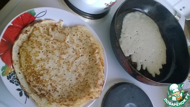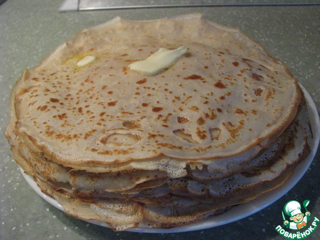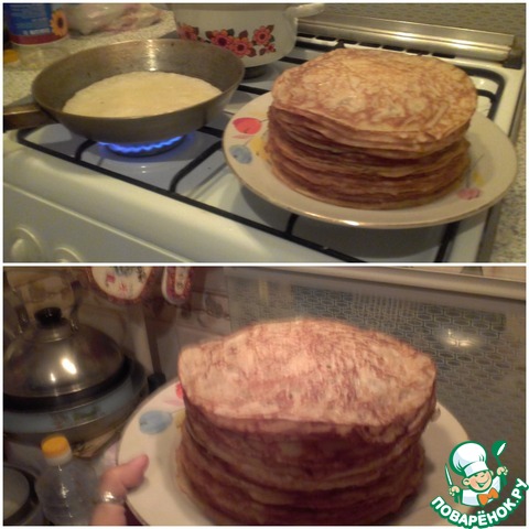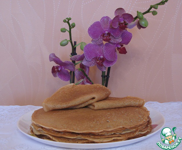 Пеките блины, если есть возможность, на чугунной сковороде (по старой привычке я перед выпеканием смазываю сковороду растительным маслом, независимо от того, есть ли в тесте масло или нет).