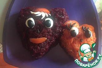 Даём салату пропитаться не менее 30 минут, затем переворачиваем на плоское блюдо и снимаем плёнку.