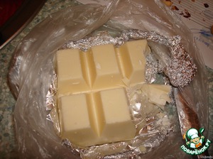 Берём белый шоколад. У меня был такой. Если честно кол-во ингредиентов писала примерно, поскольку (как уже говорила) не собиралась выставлять и не измеряла.