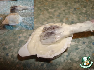 Как слегка подмёрзнет, берём остатки белого шоколада и намазываем на дно конфетки. Если застыл, опять слегка подогреваем.