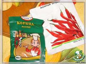 Добавляем к мясу чеснок (через пресс), корицу и перец. Продолжаем мешать, буквально минуту.
