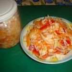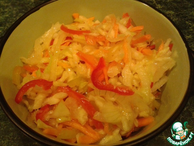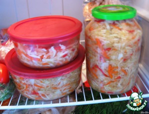 [+5]Двое суток я не вытерпела, попробовала через часов 12. Шикарно! Автор не слукавила. У салата действительно деликатный, ненавязчивый вкус, в отличии от аналогичных рецептов, в основном они "вырви глаз". Я люблю такие ,но этот мне тоже очень понравился.Не было перца, готовила без него. Остальное всё строго по рецепту, пересчитала все пропорции на 1кг капусты.