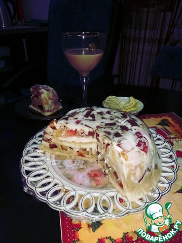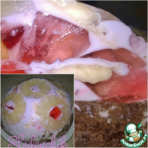 [+5]В этот раз корж - шоколадный торт на раз, два, три, ананас, банан, клубничное, вишневое и йогуртовое желе. Восхитительный рецепт!
