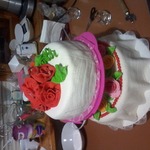 А у меня получилось в предпоследний день. Я планировала светло розовый торт и подготовила розовые, но по просьбе юбиляра переиграли /на этом цвете настоял ОН/. -