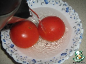 Помидоры немного подсолим и обжарим на растительном масле с двух сторон. Желательно, чтобы после жарки помидоры остались крепкими.