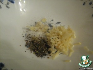 Чеснок измельчаем, смешиваем с солью и добавляем хмели-сунели (у меня прованские травы).