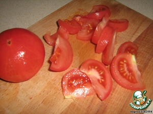 На шпроты выкладываем 1-2 дольки помидора (у меня, к сожалению, дольки твердыми не остались).