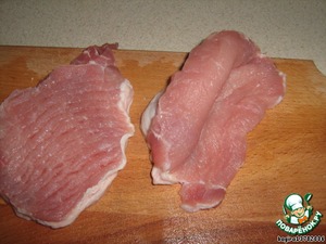 Кусочки мяса слегка отбиваем и делаем надрез в виде "кармана".