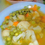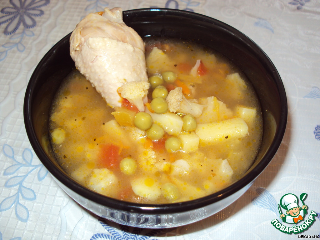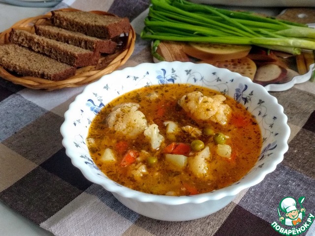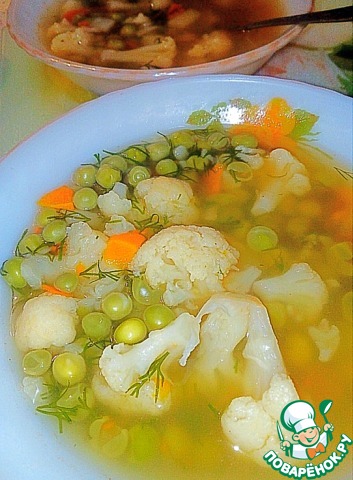 Простенькие щи с цветной капусткой и зеленым горошком. Вдруг кому пригодится.