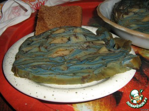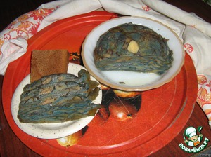 Ну, про рецепт: набрал килограмма 3, промыл, убедился, что все грибочки чуть посинели (они такие вот специфические), безжалостно просыпал солью, зачистил много чесночка и смешал. Поместил всe в эмалированную кастрюлю, накрыл марлечкой (двуслойной), блюдцем прикрыл и ... Вот тут я дал маху или, как принято, открыл нечто новое: придавил не камушком с воробышка, а чугуниной от высоковольтного изолятора - там килограмма 3 будет. Через месяц достал из подвала, а на тарелочку выскользнул вот такой хлебец. Запах, фактура, чесночeк торчит - свежим срезом белеется ... Эх, проглочу!!! Прошло за милую душу. Рекомендую.