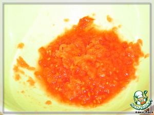 • Большой помидор натрем на терке, посолим, добавим 1/4 стакана воды.