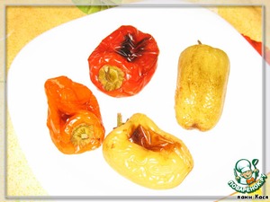 Запечем-ка для начала 4 перчика. И почистим кожицу, не порвав сами перцы (1 продольный надрез, чтобы вытащить семечки)