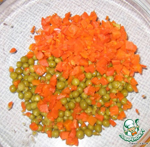 - Горошек зеленый (консервированный или 1 банка горошка с морковью) — 1/2 бан.