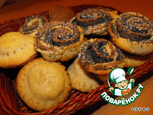 Из остатков теста я сделала розочки с маком (уж очень любим мы его) :