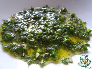 Промоем хорошо травы. Нарежем их мелко. В неглубокой тарелке смешаем порубленные травы с 3-мя ст.ложками растительного масла, солью и молотым чёрным перцем.