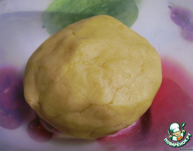 Тем временем делаем тесто - маргарин рубим с мукой, добавляем чуть соли, формируем такой вот шар и убираем его в холодильник.