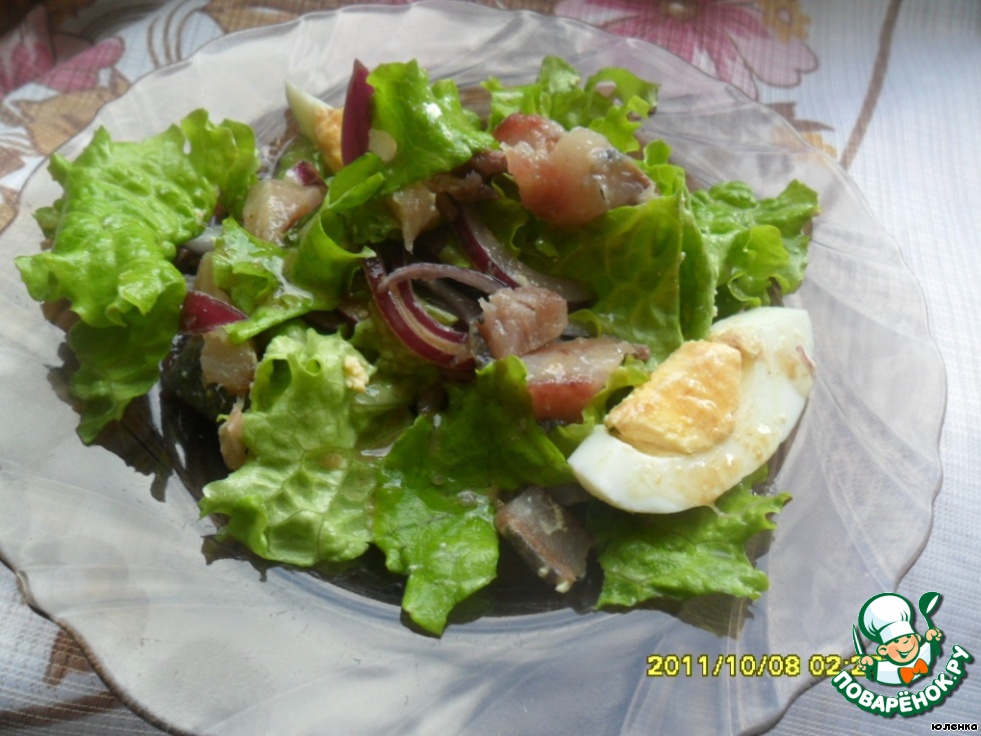 После того, как нашла в интернете рецепт этого салата, очень часто его готовлю, подходит и на праздничный стол и для будней. Название я не меняла, указала, как в оригинальном рецепте: так как оно этому соответствует. Очень вкусный салат с селедкой и с моей любимой французской заправкой. Угощайтесь!!!