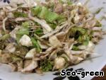 Заправкой полить салат (заправлять перед подачей - это важно).
