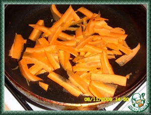 Отдельно обжарить тонко нарезанную морковь (нарезайте все овощи кусочками одинаковой формы).