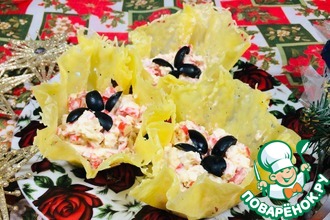 В серединку аккуратно кладем салатик, украшаем тертым сыром, сухариками.