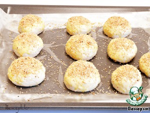 Булочки положить на противень смазанный маслом, и застеленный пергаментом, швом вниз.