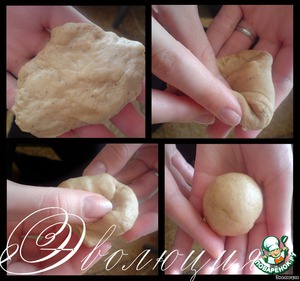 Отщипываем небольшие кусочки и формуем булочки. Я делаю так: немного расплющиваю кусочек, затем подворачиваю уголки к серединке, и придаю форму шарика.