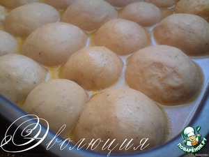 Укладываем будущие булочки в форму с высокими бортами друг от друга на небольшом расстоянии.