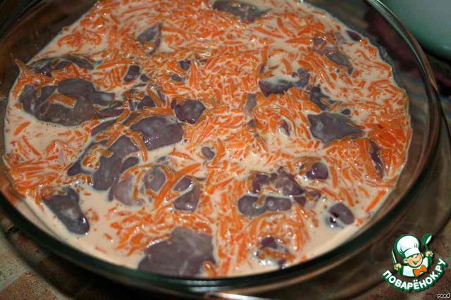 Рецепт «Куриная печень в сметано-тыквенном соусе»: