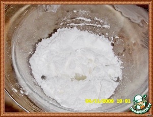 Просеять муку (1 1/4 стак.) с солью и (2 ст. л.) сахарной пудрой.
