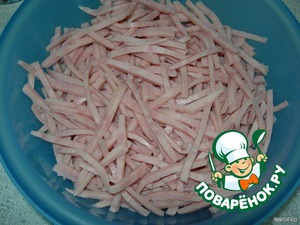Нарезаем ее тонкой соломкой и выкладываем в салатник