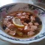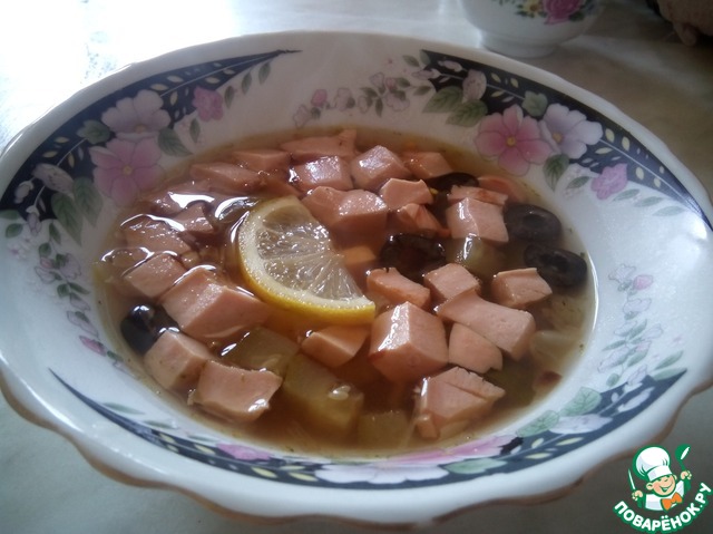 Перед подачей на стол в каждую тарелку бросить дольку лимона.