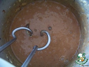 Выливаем шоколад в яично-масляную смесь, взбиваем.
