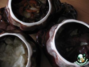 Отправляем горшочки в духовку, нагретую до 180-200 град. на 40-45 минут.